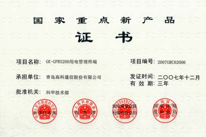 国家重点新产品证书